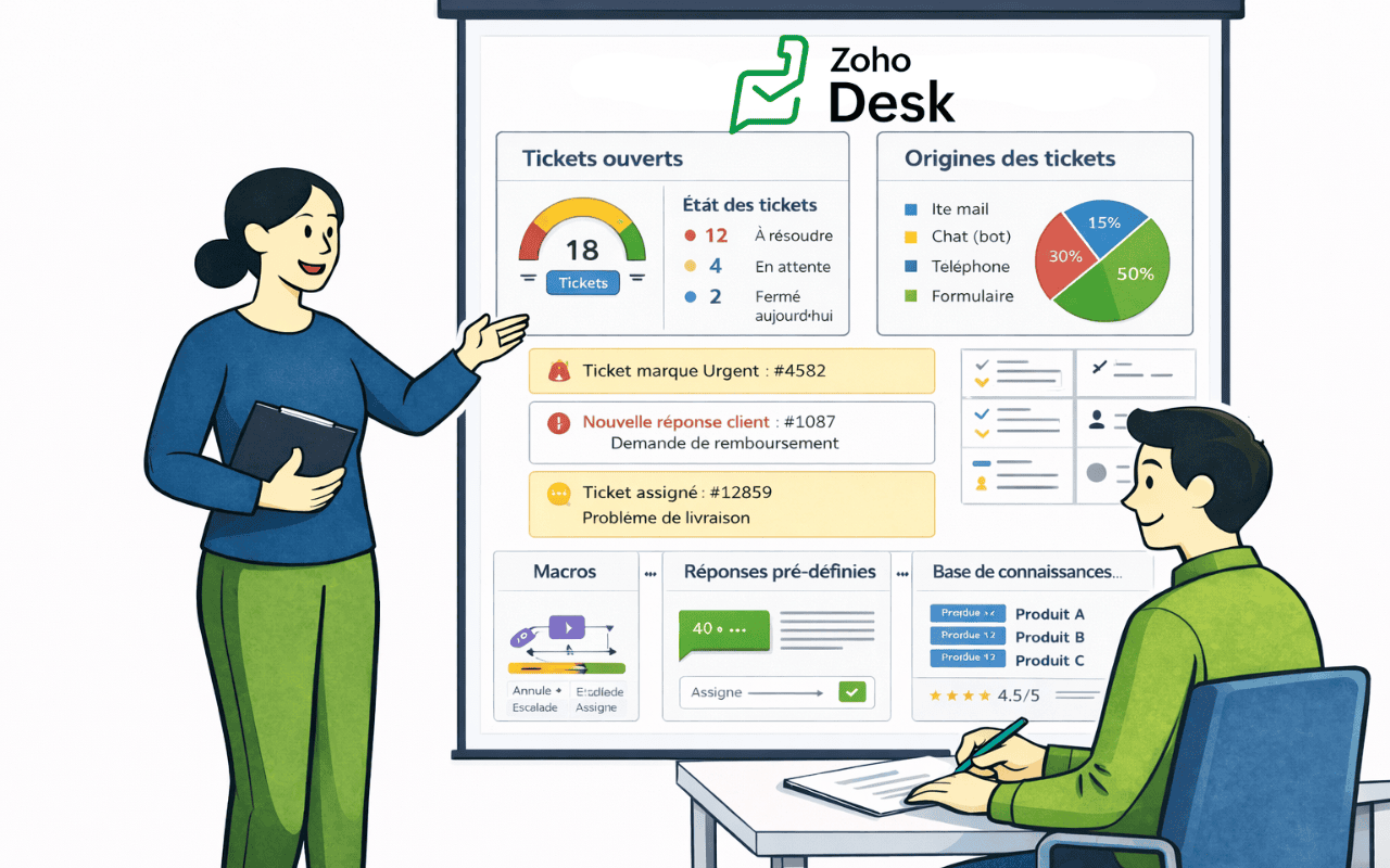Être capable de paramétrer, administrer et faire évoluer Zoho Desk, en automatisant les processus, en sécurisant la plateforme et en intégrant la solution dans l’écosystème applicatif de l’entreprise.