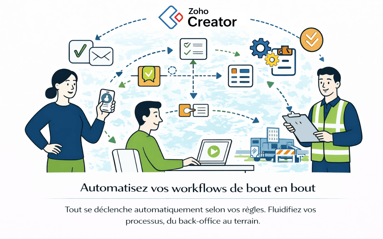 Stop aux tâches répétitives : approbations, relances, calculs, affectations, mises à jour, notifications… Tout se déclenche automatiquement selon vos règles. Vous standardisez les méthodes, réduisez les erreurs et fluidifiez l’exécution des processus, du back-office au terrain.