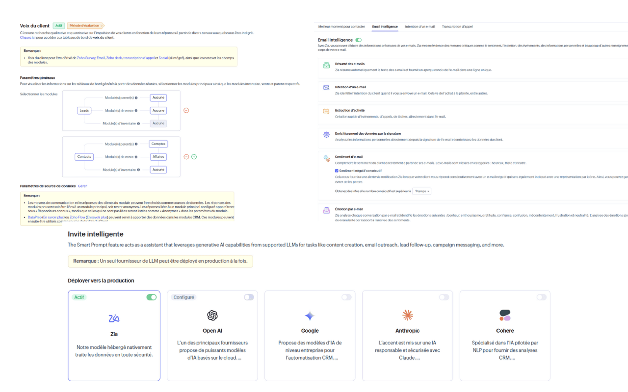 L’IA intégrée à Zoho CRM vous aide à vendre plus vite et mieux. Elle analyse vos données, suggère les meilleures actions, automatise les tâches répétitives et améliore la qualité de vos prévisions. Résultat : plus de temps pour vos clients, un pipeline mieux maîtrisé et de meilleures performances.
